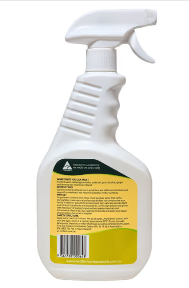 This multi purpose Australian made surface spray does not compromise your family’s health or pollute the environment. Derived from plant and mineral ingredients, it uses old fashioned 1960s saponification – turns grease and grime into soap with the effectiveness of the leading brands without the use of nasty chemicals such as d-limonene, ammonia or bleach. Best of all, our essential oil blends will leave your house smelling like home not a hospital!