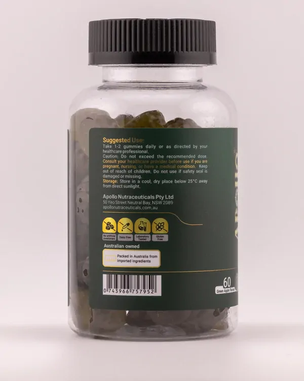 Apollo's Irish Sea Moss Gummies are an easy and mouthwatering way to take your vitamins and minerals that your body needs to operate at its prime. Everything you need packed in a delicious green apple flavoured gummy that is macro friendly. Each gummy is packed with an impressive 800mg of premium Irish Sea Moss naturally containing 92 minerals, vitamins, fibre, prebiotics, amino acids, antioxidants and proteins.