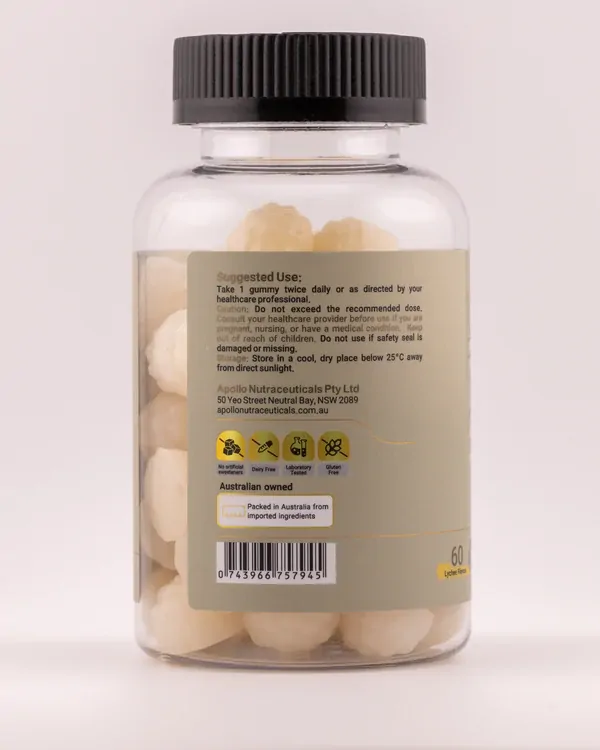Apollo's Lion’s Mane Gummies are an easy and mouthwatering way to find clarity in your mind and boost your overall health. Apollo’s Lion’s Mane Gummies are each formulated with an impressive 500mg premium Lion’s Mane Mushroom extract in a delicious lychee flavoured gummy that is macro friendly. Lion’s Mane is valued in traditional wellness systems for both Men and Women and is a great option for those looking to support mental focus, mood and daily performance as part of their wellbeing routine. Just 1–2 gummies a day is all you need!