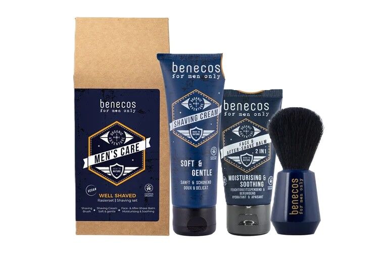 The vegan synthetic hair shaving brush provides optimal pre-shave preparation and perfectly complements the Shaving Cream. It nourishes with organic aloe vera juice and foams. He will love the soothing 2-in-1 Face & After-Shave Balm, with regenerating verbena hydrosol, leaving his skin feeling soft, soothed and supple.