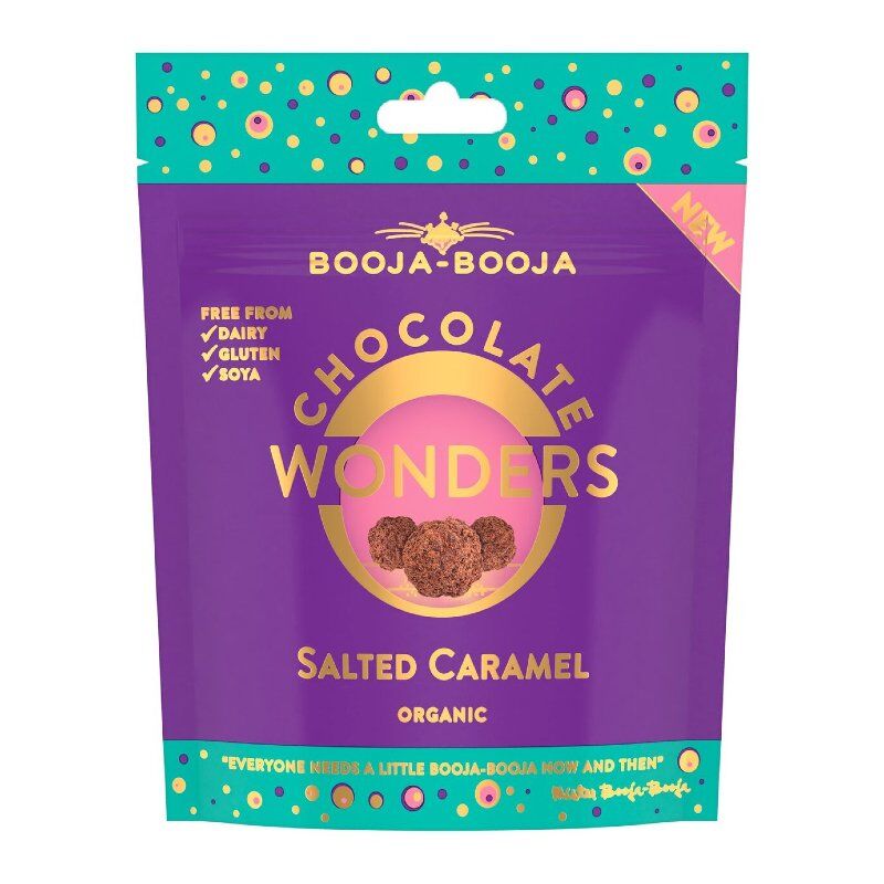 Amazingly delicious little chocolate adventures, created to make it easier than ever to enjoy a little Booja-Booja along your way. Chocolate salted caramel chewy gooey ganache rolled in rich chocolate flakes.
