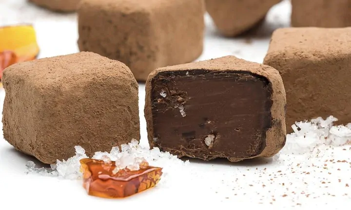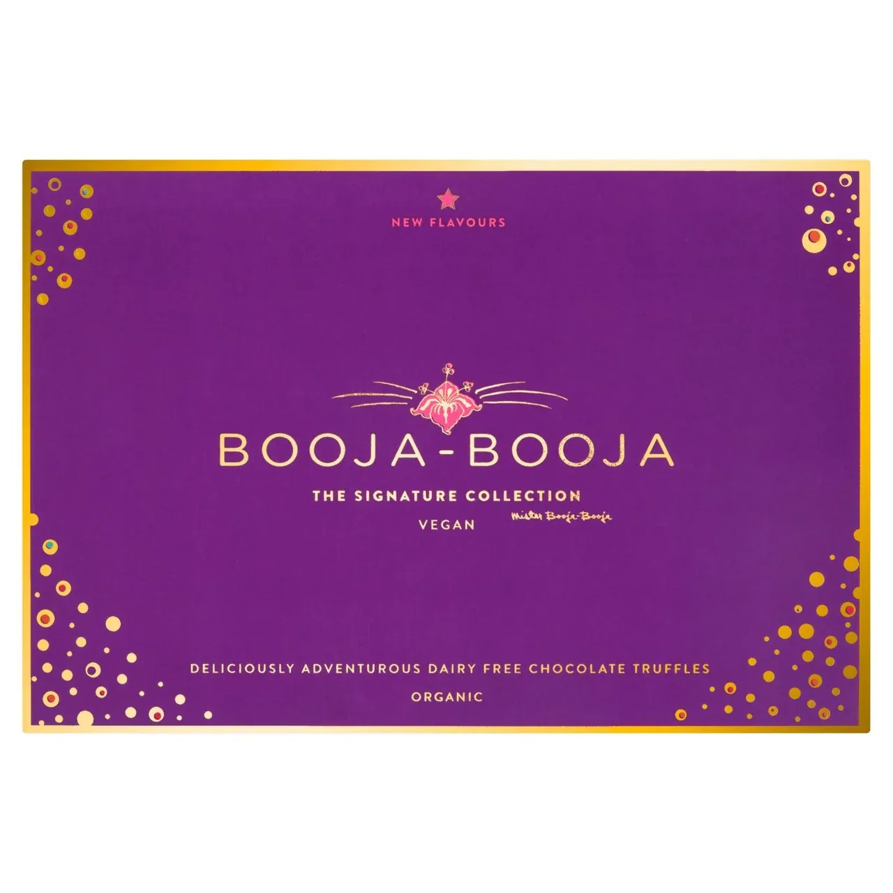 A selection of sixteen deliciously adventurous chocolate truffles, developed in Mister Booja-Booja’s special parlour. This selection features Chocolate Orange, Chocolate Salted Caramel, Deeply Chocolate and Honeycomb Caramel. Each truffle is created with a handful of simple, carefully chosen organic ingredients, whisked and whirled to perfection.