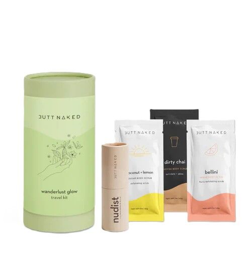 Take your adventure to the next level with our Wanderlust Glow travel kit. Filled with travel-friendly body scrubs and all-in-one skin balm, it's the ideal companion for wanderers chasing that glowing radiance on-the-go. Relieve and rejuvenate dry, cracked, or chapped skin anywhere you wander with the super-hydrating Nudist balm. Its quick nourishment provides instant relief for tired, thirsty skin. Plus, our compact body scrubs exfoliate dullness, leaving skin soft and bright for your globe-trotting escapades.