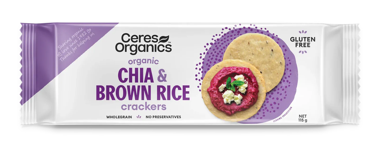 Ceres Organics believe in using only the finest wholesome ingredients. So their Rice Crackers are made of just that - organically grown wholegrain Jasmine brown rice + the 'superfood' chia with just a touch of natural sea salt. No 'nasty' stuff like MSG, artificial flavours, synthetic preservatives or refined sugars. They're light, crispy, and full of natural deliciousness. Enjoy with your favourite toppings, or munch straight from the pack!