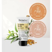 DermaGen Propolis Balm is ARTG-listed to provide symptomatic relief of inflammatory skin conditions such as mild eczema and dermatitis. Relieves discomfort and supports healing of sores, grazes and minor wounds. Relieves the symptoms of minor fungal infections, promotes healing of cold sores and pimples and may also reduce scarring. It has been independently tested to show inhibition of Staph.aureous, a common skin bacteria that can cause skin infections on open wounds, and Candida Albicans, a common yeast that causes fungal skin infections in moist, warm areas of skin folds. It is a hydrating balm, with a mild scent of botanical resins and oils. It forms a layer over the skin and prevents the evaporation of moisture so skin feels hydrated over a longer period of time.