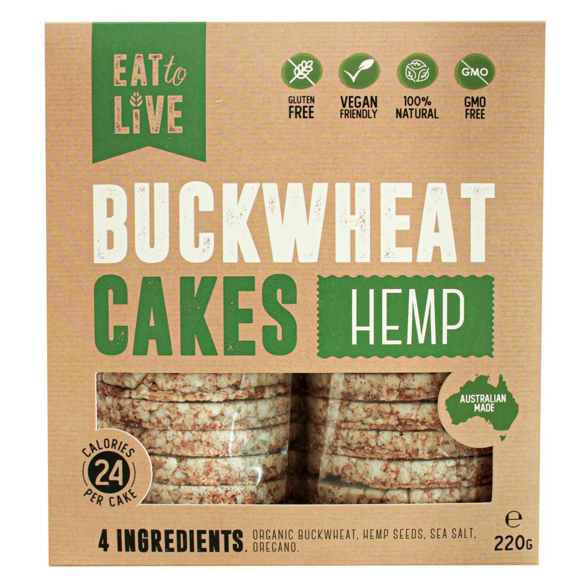 Ingredients: Organic Buckwheat (70%), Himalayan Brown Rice, Hemp Seeds, Oregano, Sea Salt. (Gluten Free)