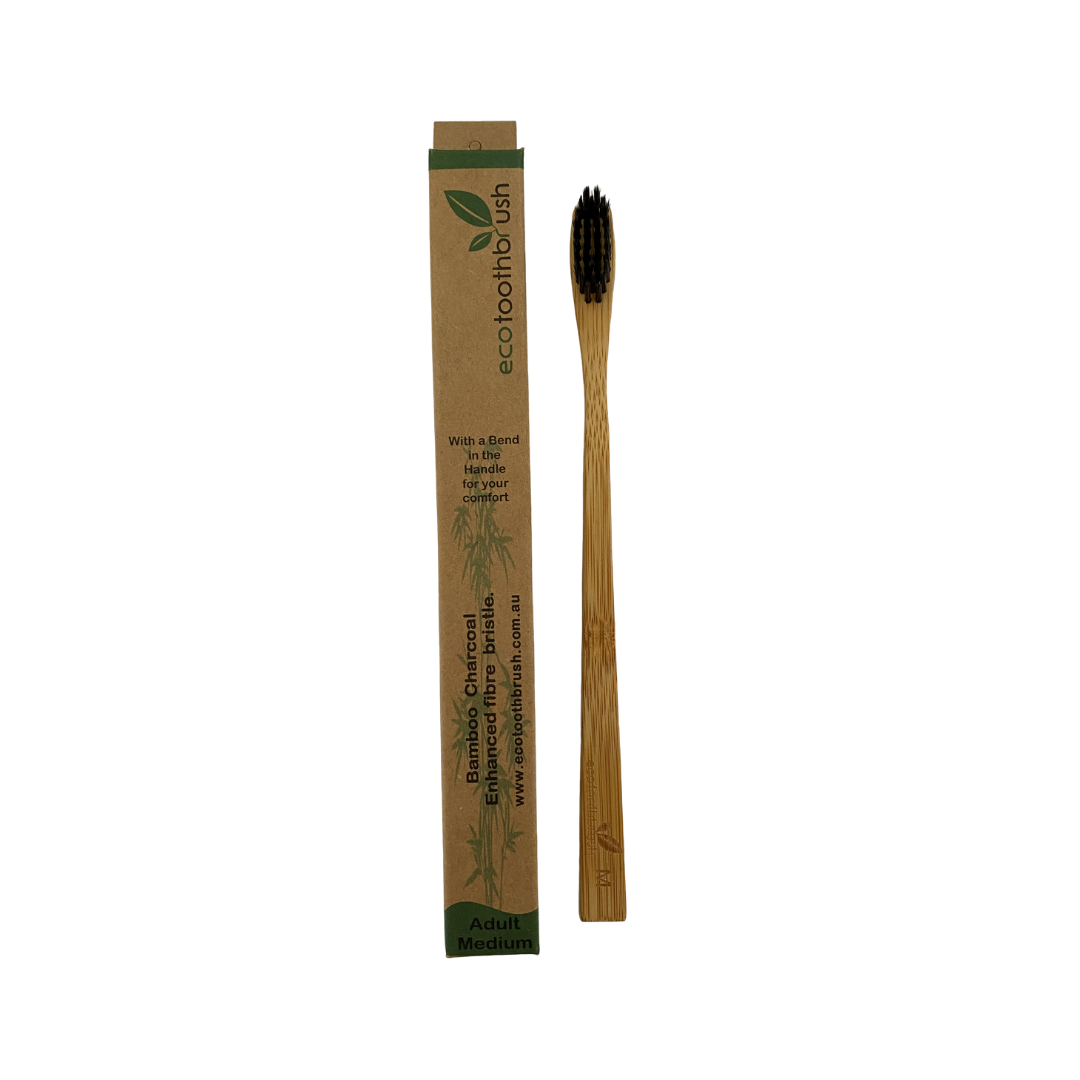 The medium adult Eco Toothbrush is an eco-friendly alternative to your typical plastic toothbrush. Its handle is made from 100% bamboo which means it is biodegradable at the end of its life (simply snap off the head or pull out the bristles before burying or composting).