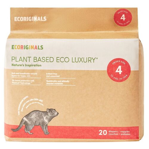• NAPPIES WRAPPED IN 100% COMPOSTABLE PACKAGING. Ecoriginals craft paper packaging with corn starch lining is a world first, and not only does the packaging decompose, it will return to earth with zero trace!