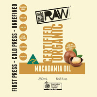Macadamia Oil is low in saturated and polyunsaturated fats and high in monosaturates. Macadamia Oil is suitable for cooking and as a salad dressing. Every Bit Organic RAW oils are cold-pressed, unadulterated and certified organic - the very best.