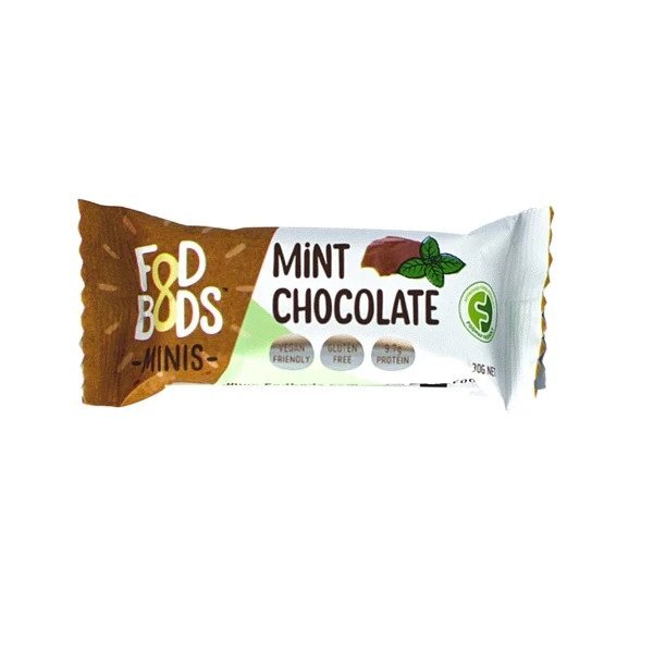 Ingredients: Organic Rice Malt Syrup, Almond Butter, Organic Protein Blend (Pea and Rice), Vegan Dark Chocolate (Cacao, Coconut Sugar, Natural Vanilla), Cacao Powder, Soy Protein Crisps (non-GMO), Himalayan Salt, Pure peppermint oil