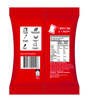 Bring on the sour power and treat ya tastebuds to our delicious Sour Cola Gummy Bottles! Made with a mouth-watering blend of sourness and cola flavour, with a hint of juicy lemon flavour in every bite!