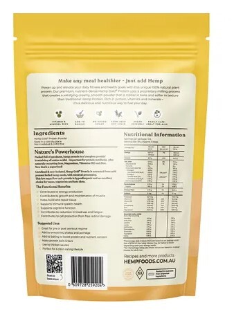 Our Organic Hemp Gold Protein Powder is made from Certified Organic hulled Hemp Seeds using a purely mechanical cold-milling process resulting in a fine powder that blends well. No chemicals are involved. It is a complete protein with minerals, vitamins and fibre that can aid digestion.