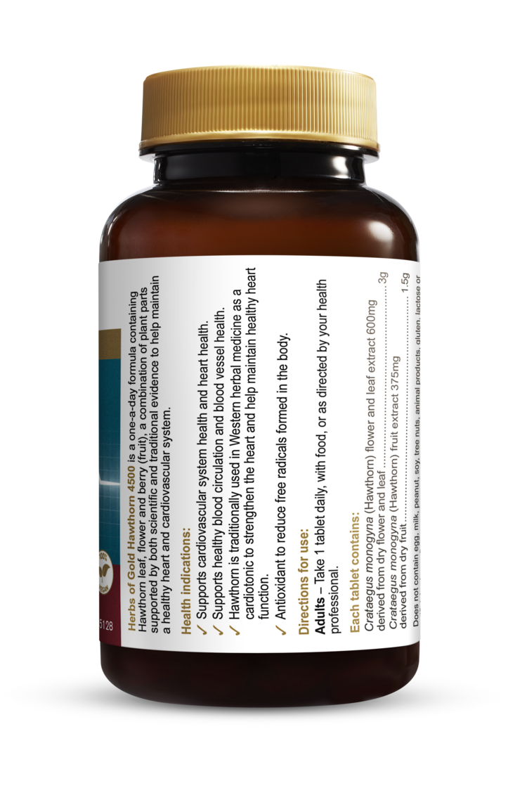 Herbs of Gold Hawthorn 4500 is a one-a-day formula that contains Hawthorn flower, leaf and berry to support cardiovascular system health.