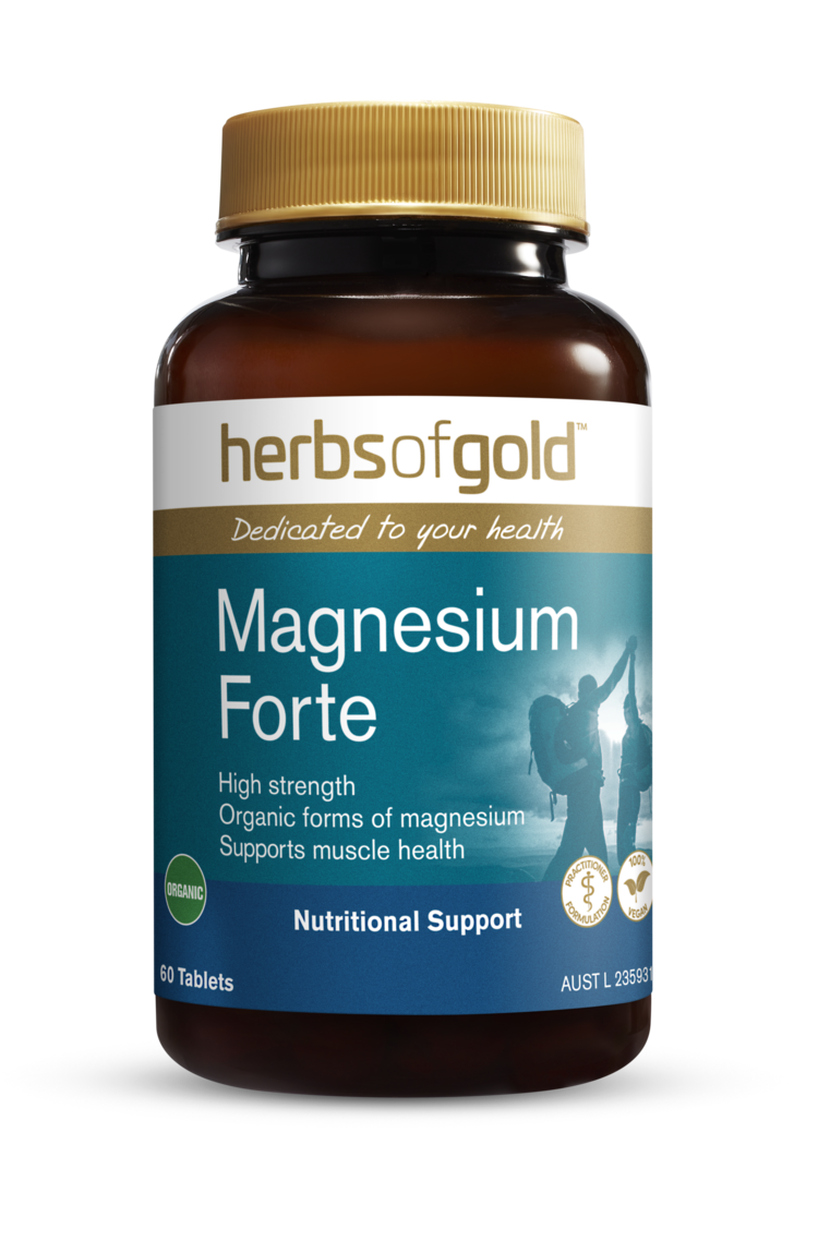 Herbs of Gold Magnesium Forte contains four organic forms of magnesium that are well absorbed in the body to support healthy muscle contraction function and bone health.