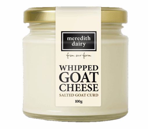Meredith Dairy whipped goats cheese has a pure white colour and soft texture. This fresh curd cheese is lightly salted and exhibits a clean, citric flavour, making it a ideal platform for sweet or savoury foods. Meredith Dairy was established in 1991 by Julie and Sandy Cameron, cheese making pioneers who set up a small farmhouse dairy making sheep and goat’s milk cheese and yogurt.