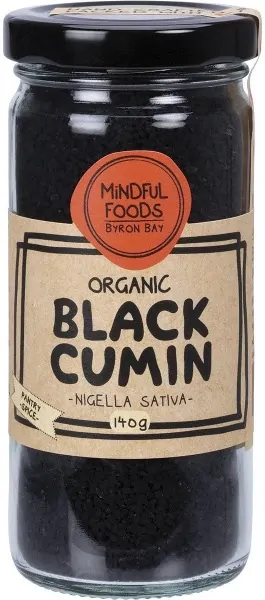 The Mindful Pantry Spice. Nigella Sativa black cumin, black caraway, nigella, kalojeera, kalonji or kalanji, has anti-inflammatory and anti-oxidant properties. When taken with turmeric, the bioavailability (absorption) of curcumin (turmerics active ingredient) increases 20-fold. Based in the Murwillumbah area of the Northern Rivers region in NSW, Mindful Foods specialise in organic and activated granolas, nuts, organic herbal teas, and Stardust Organic Nutrient Powders.