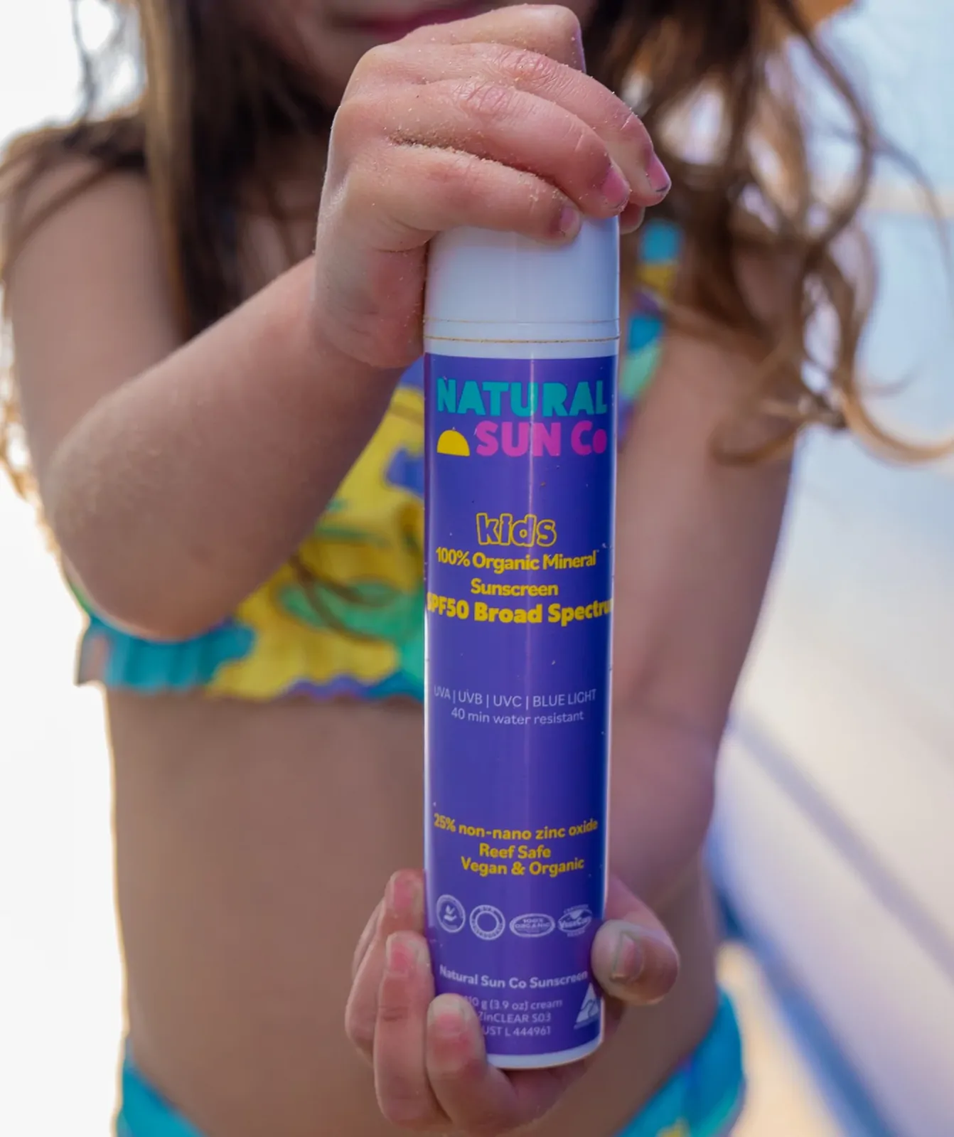Natural Sun Co kids sunscreen is carefully formulated with 100% organic ingredients, because we believe what goes on your child's skin should be as pure as possible. Proudly Australian made, their formula combines non-nano zinc oxide, natural minerals, botanical plant extracts, and purified water to deliver safe, effective sun protection without any nasties. It's gentle enough for babies 6 months and older, and ideal for children with sensitive or allergy-prone skin. With every bottle, you're choosing clean, conscious skincare that parents can trust and kids will love to wear.