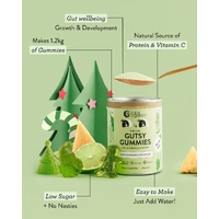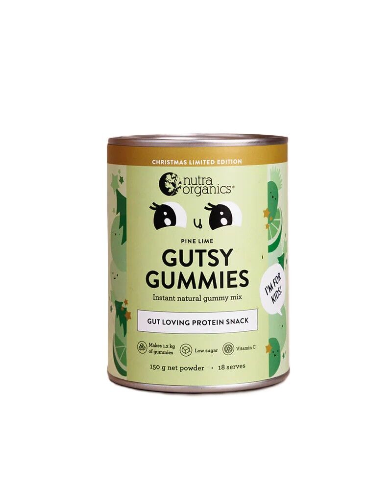 A very merry treat-mas indeed! Our limited edition Gutsy Gummies Pine Lime is a festive and low sugar, protein snack to nourish kiddies and support their gut wellbeing. The most wonderful time of the year calls for a wiggly, jiggly, fun & nutritious alternative to sugar-laden jellies and artificial gummies.