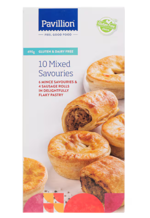 6 mince savouries & 4 sausage rolls in delightfully flaky pastry. Feel good food. Handmade in a gluten free bakery in Christchurch, using local and imported ingredients. They've taken out the gluten to make you feel good, and they've put in the taste to make great food.