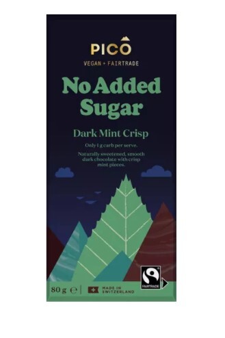 Delightfully dark chocolate, with a cool peppermint finish. Naturally sweetened, smooth dark chocolate with crisp mint pieces.