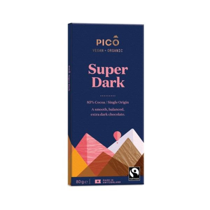 Pico Super Dark Chocolate is the result of hard work, patience and dedication to the art of chocolate-making. Our Swiss master chocolatiers source single origin Forastero cacao from the Dominican Republic, which has a milder chocolate flavour and lower acidity - perfect for the higher cacao content. The result is a velvety, uniquely aromatic, full but balanced flavour profile.