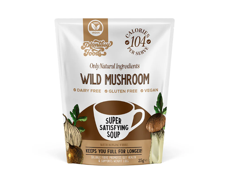A rich gourmet cup of soup is made with wild mushroom and white pepper. Made with plant-based ingredients without E-Numbers or fillers. It's high in soluble fibre so you stay satisfied and full for longer. Simply add boiling water, stir and enjoy.