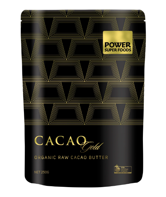 Power Super Foods' Cacao butter is chipped and easy to grate, chop, or melt into a sublime glossy liquid. Make your own white chocolate or add our Cacao Gold Powder for a decadent dark chocolate.