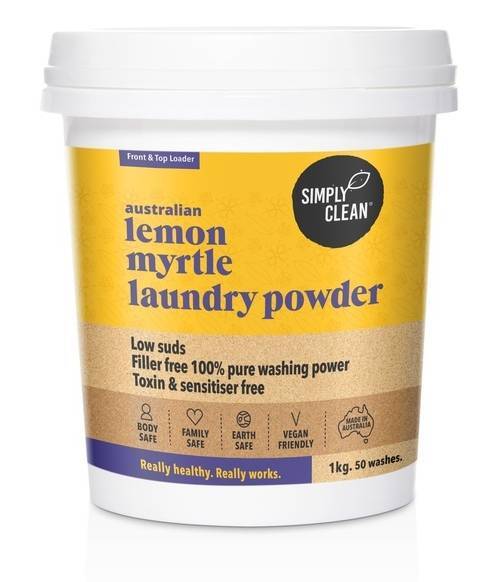 Simply Clean's front & top loader Lemon Myrtle Laundry Powder is filler free and is so pure that it gives you 50 washes per kg, twice the number of washes of Australia's leading brand. That's good for the environment and good for your pocket.