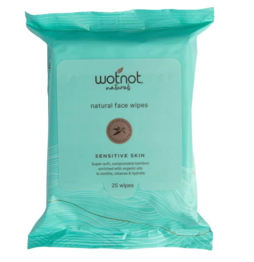 These Wotnot Sensitive Skin facial wipes are the ultimate makeup remover for all skin types, and are ideal for those with sensitive skin. With a non drying formula that is extra gentle on sensitive skin, skin is left feeling clean, but not dry, after use. A natural and convenient way to remove makeup and clean the face on the go, perfect to keep in your handbag and perfect for the gym bunnies and when flying. These Wotnot facial wipes are a skin saviour after a late night out too and handy to keep on your bedside table. Made from 100% natural cloth enriched with a unique, purified water based cleansing formula containing Aloe Vera, Sweet Almond Oil and Jojoba Oil to clean and condition the delicate facial skin and eye area.